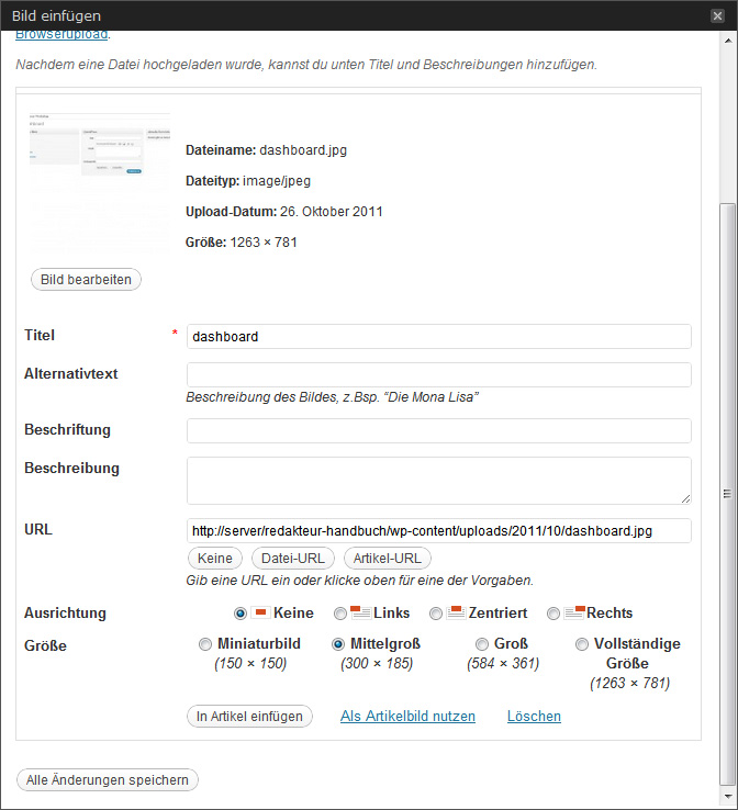 Zum endgültigen Einfügen des Mediums bestätigen Sie Ihre Angaben mit dem Button Einfügen.
