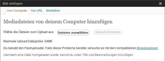 Das Einfügen von Medien bzw. Filmen in WordPress-Artikel ist mittlerweile sehr einfach geworden und muss in den meisten Fällen nicht mehr über den hier vorgestellten Button vorgenommen werden. Der Button ist noch eine Art Relikt aus vergangener Zeit. Da die neue Methode, die wir Ihnen im dritten Abschnitt vorstellen werden, jedoch nicht immer anwendbar ist, sollten Sie den traditionellen Weg auch kennen, um im Notfall darauf ausweichen zu können.