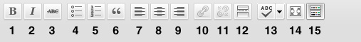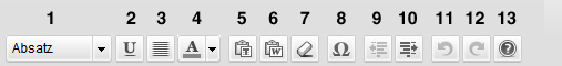 Die Funktionsweise der einzelnen Buttons entspricht der aus Textverarbeitungs-, E-Mail-Programmen (erweiterte Ansicht) oder anderen CMS. Sie aktivieren die Formatierung entweder während des Schreibens oder markieren im Nachhinein Wörter bzw. Abschnitte und formatieren sie dann durch einen Klick auf den entsprechenden Button.
