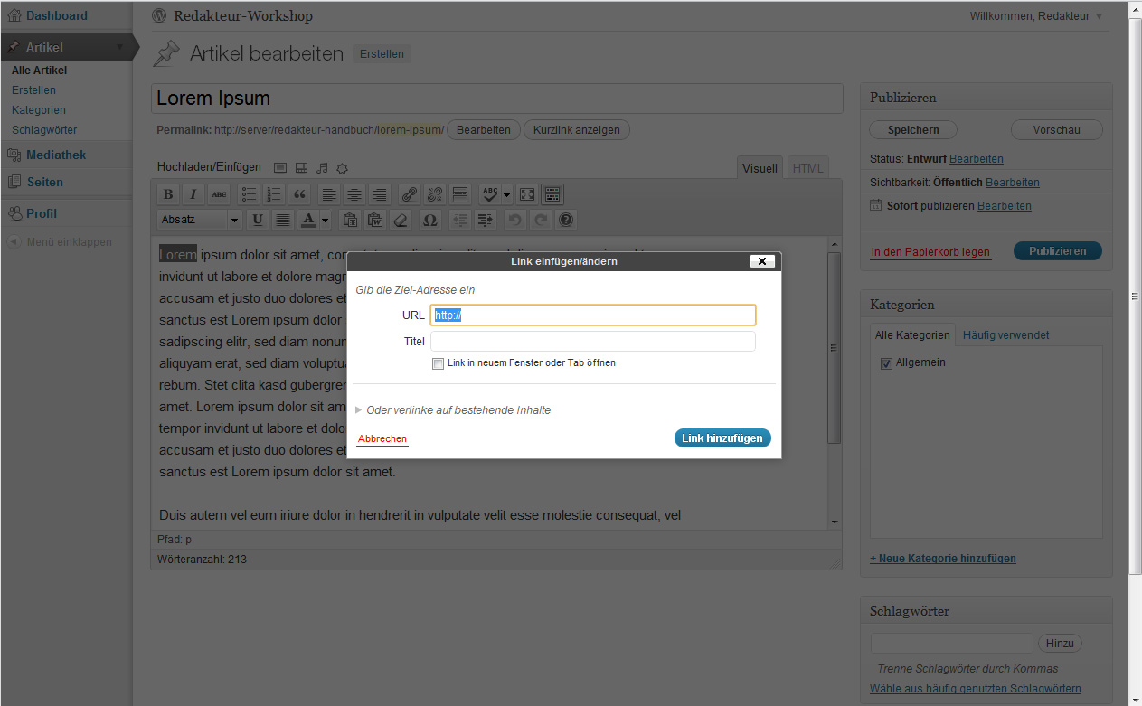 Einen Artikel mit dem WYSIWYG-Editor verfassen