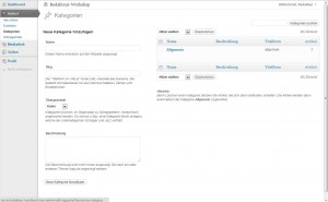 Um einen Artikel in WordPress zu verfassen, müssen Sie sich auf die Unterseite Artikel/Erstellen (links in der Navigation) begeben oder den Punkt Neuer Artikel im Dropdown-Menü im Kopfbereich aufrufen. Auf beiden Wegen gelangen Sie in den Unterbereich Neuer Artikel.