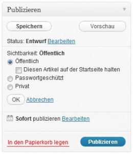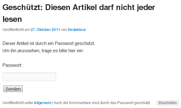 - Der „weiterlesen…“-Link. Trennt den Text in eine Einleitung (engl. Teaser) und den Rest.