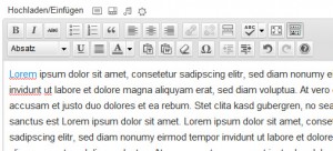 Haben Sie alle notwendigen Angaben (URL, evtl. Target) gemacht, klicken Sie auf den Button Einfügen. Der verlinkte Text erscheint daraufhin unterstrichen. Wenn Sie nachträgliche Änderungen vornehmen möchten, setzen Sie den Cursor „in“ den verlinkten Bereich und klicken erneut auf den Button „Link einfügen/ändern“.